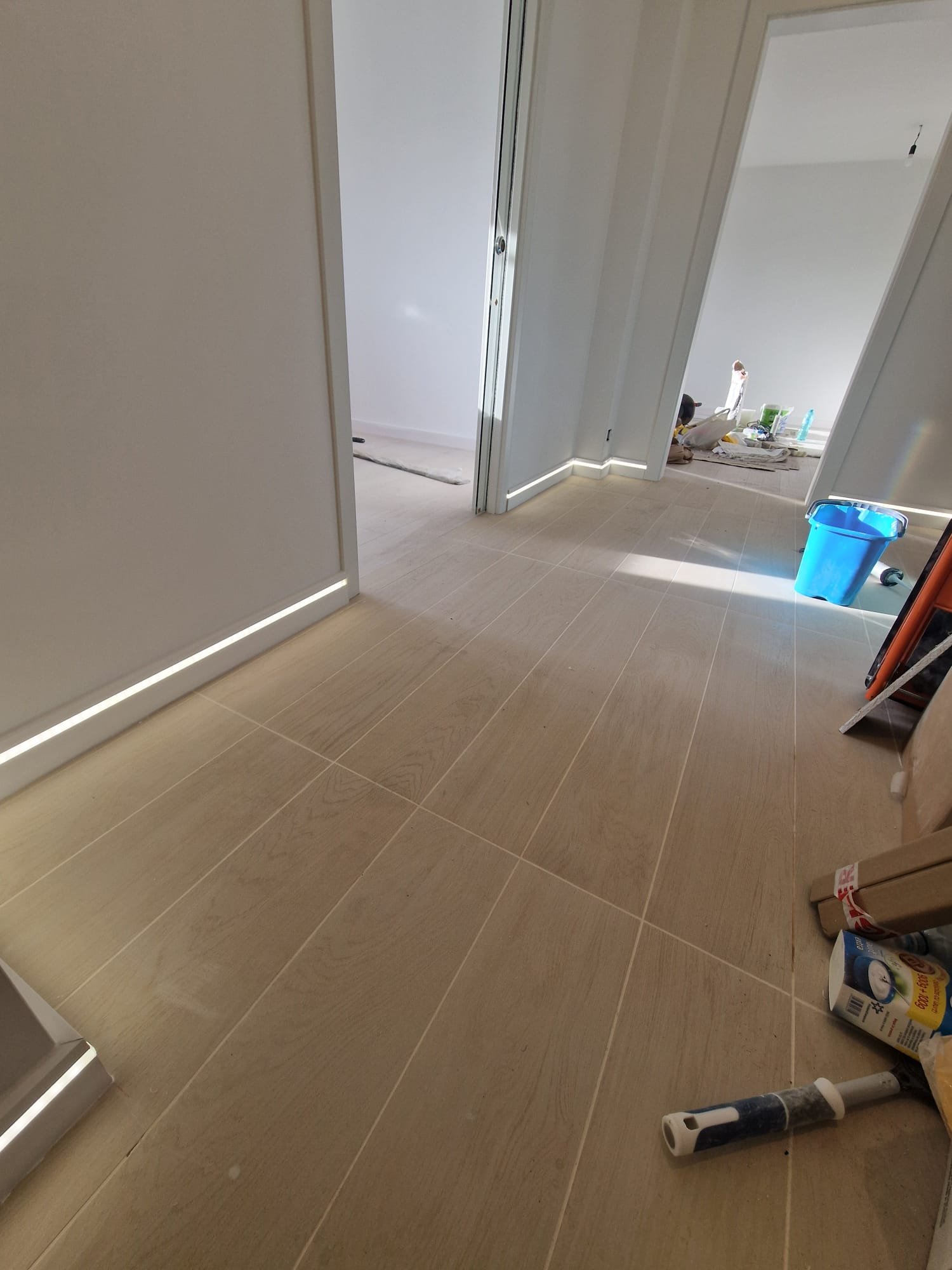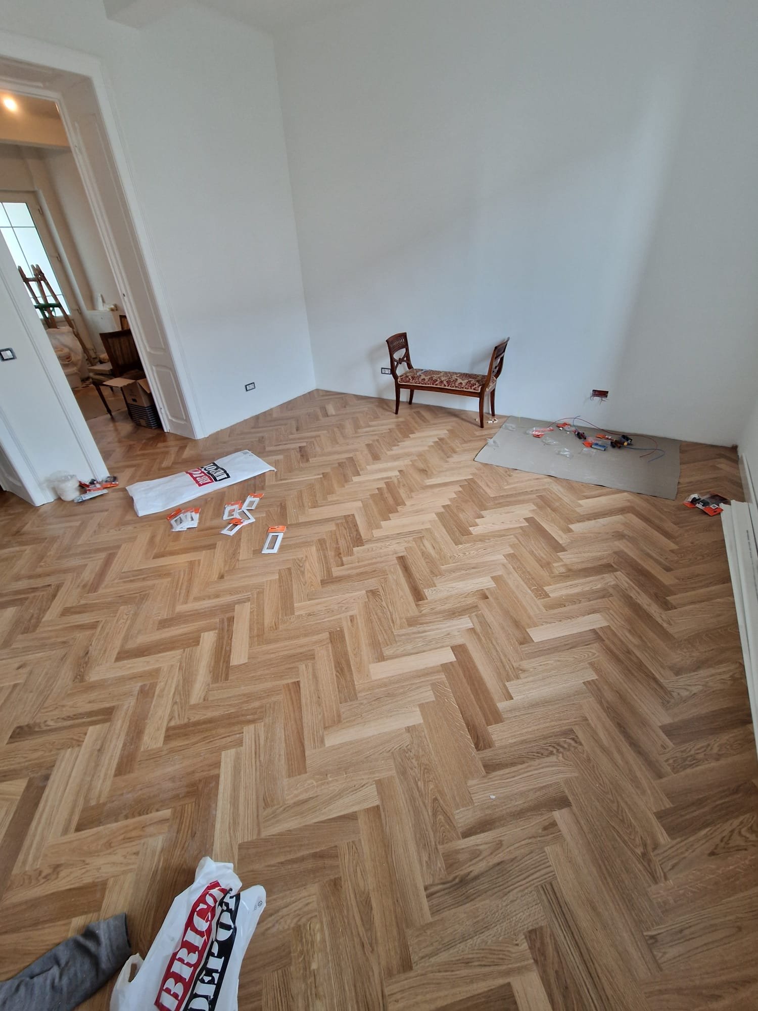 În cadrul acestui proiect ne-am ocupat de vopsirea pereților, aplicarea șapei autonivelante, montajul parchetului, al riflajelor decorative, tapetului cât și montajul obiectelor sanitare.