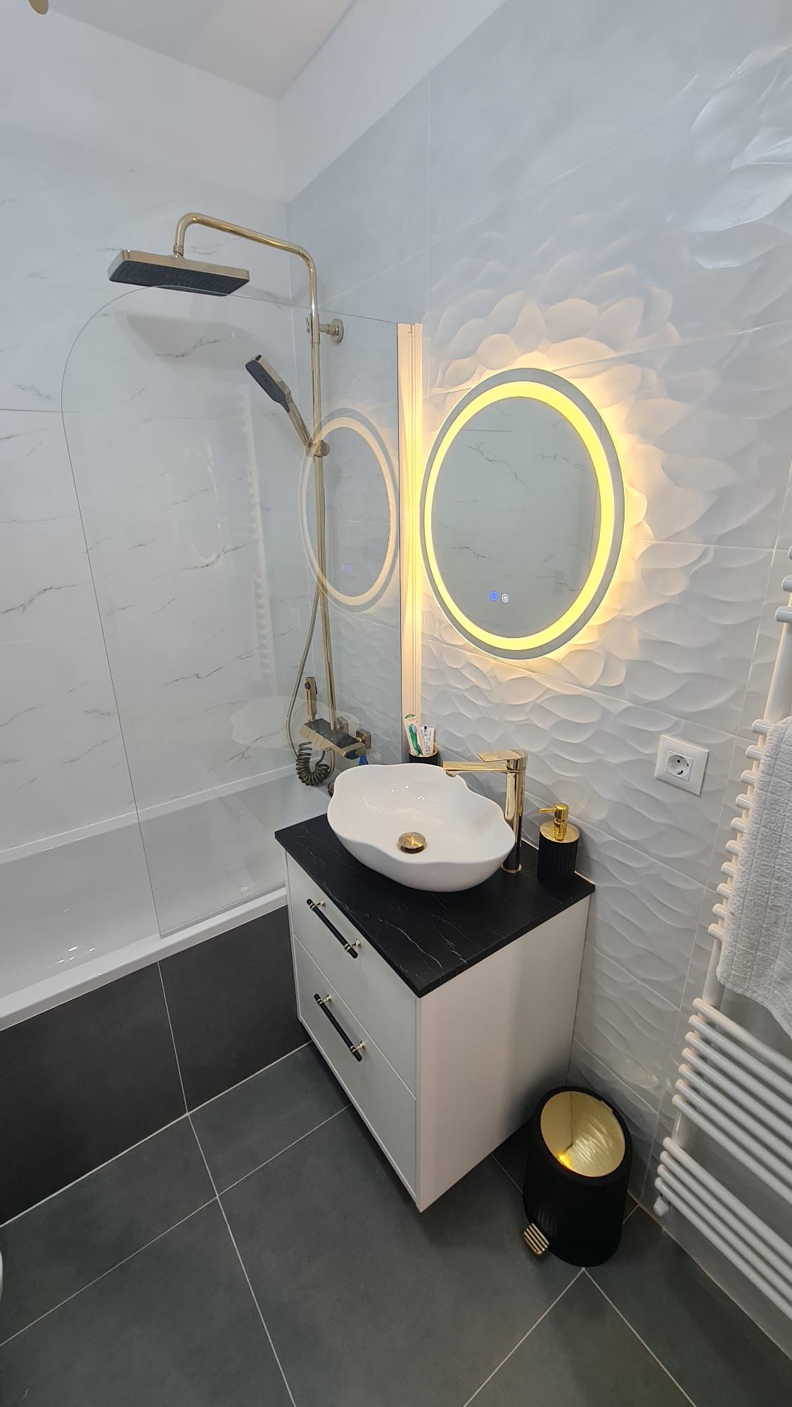 În cadrul acestui proiect de renovare interioară ne-am ocupat de refacerea tuturor finisajelor, a instalației electrice, sanitar/termice, încălzire în pardoseală cât și montajul obiectelor sanitare.