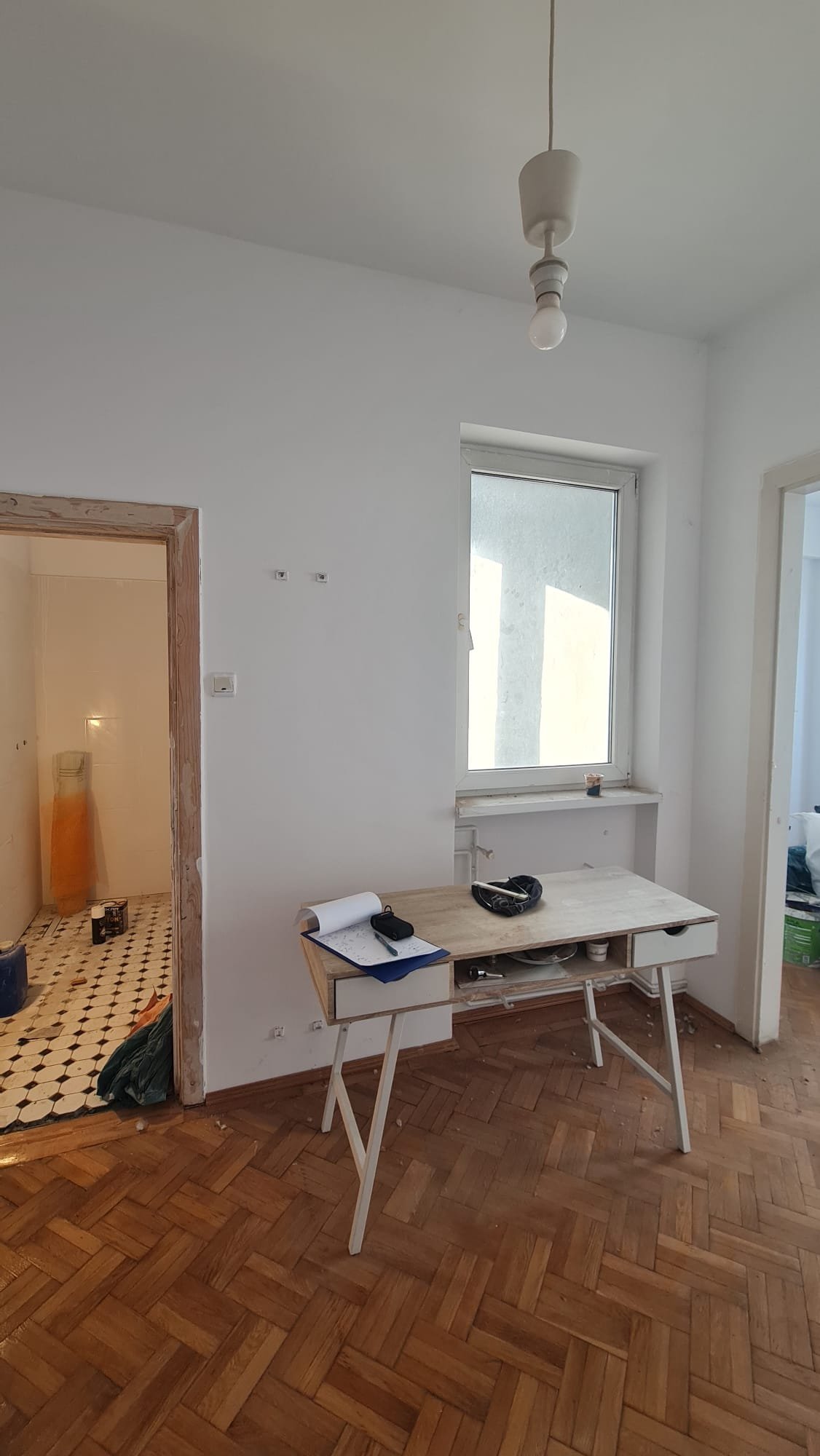 În cadrul acestui proiect de renovare interioară ne-am ocupat de vopsirea pereților, de modificarea instalației electrice, montajul parchetului, al profilelor decorative, fototapetului cât și montajul obiectelor sanitare.